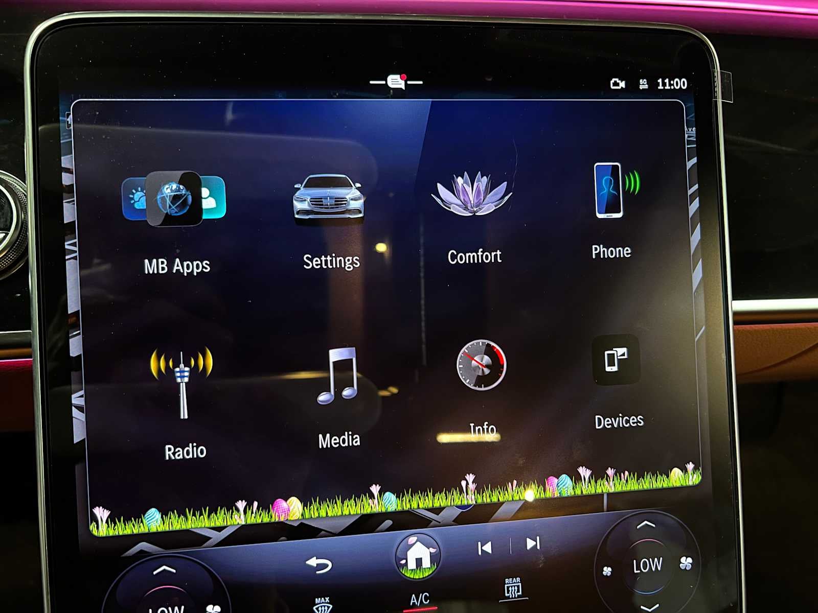 - Radio: MBUX w/Navigation -inc: 12.8" OLED touch screen, augmented video for navigation, wireless front charging, wireless smartphone integration (Apple CarPlay, Android Auto), 8 USB-C inputs, 115V power supply and online music streaming