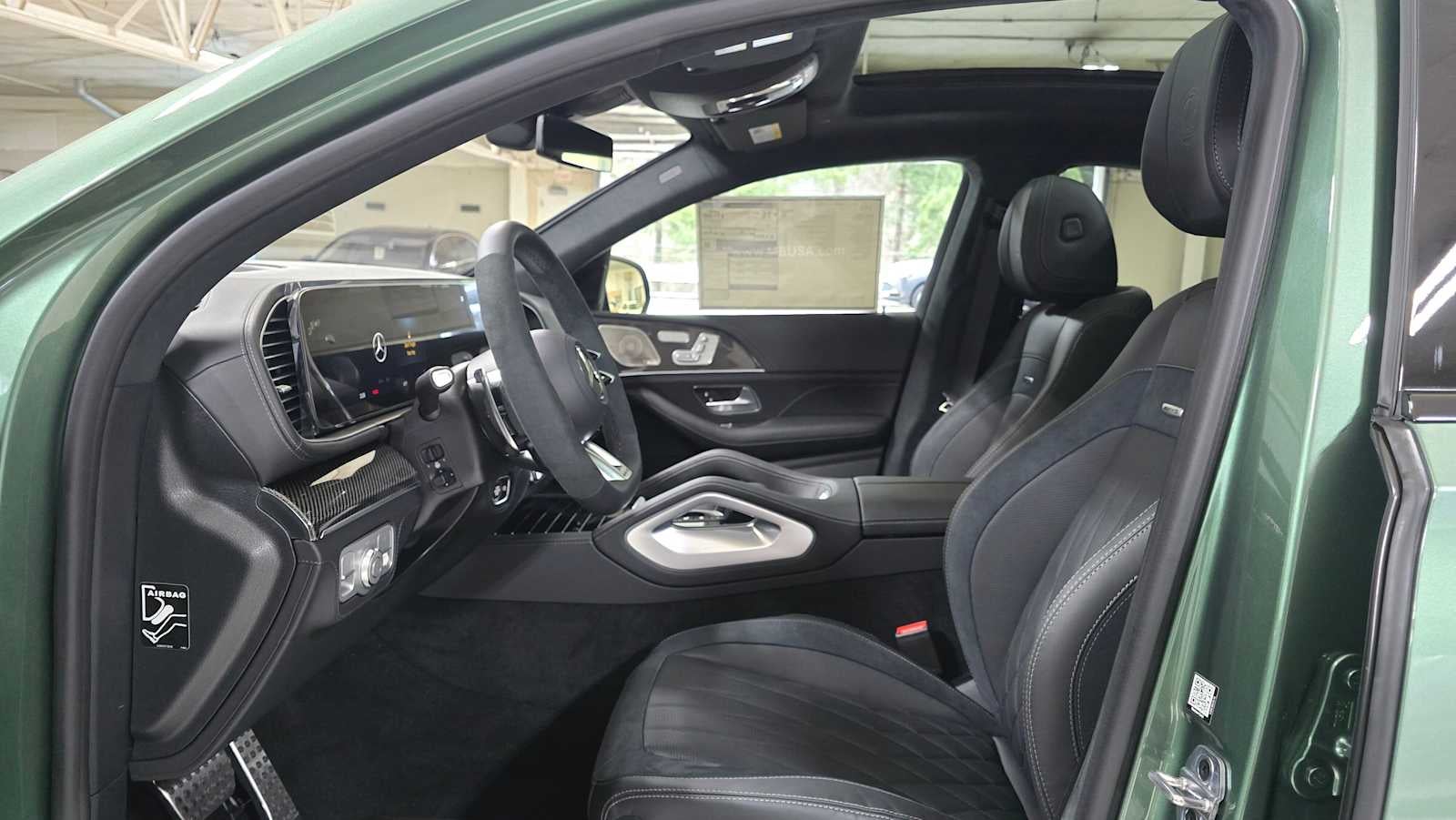Heated Leather Seats, Navigation, Sunroof, Panoramic Roof, Full-Time 4MATIC® All-Wheel, Turbo Charged, WHEELS: 22 AMG® CROSS-SPOKE MATTE BL. AMG® GLE 63 S trim, MANUFAKTUR Ireland Mid Green Metallic exterior and Black interior.