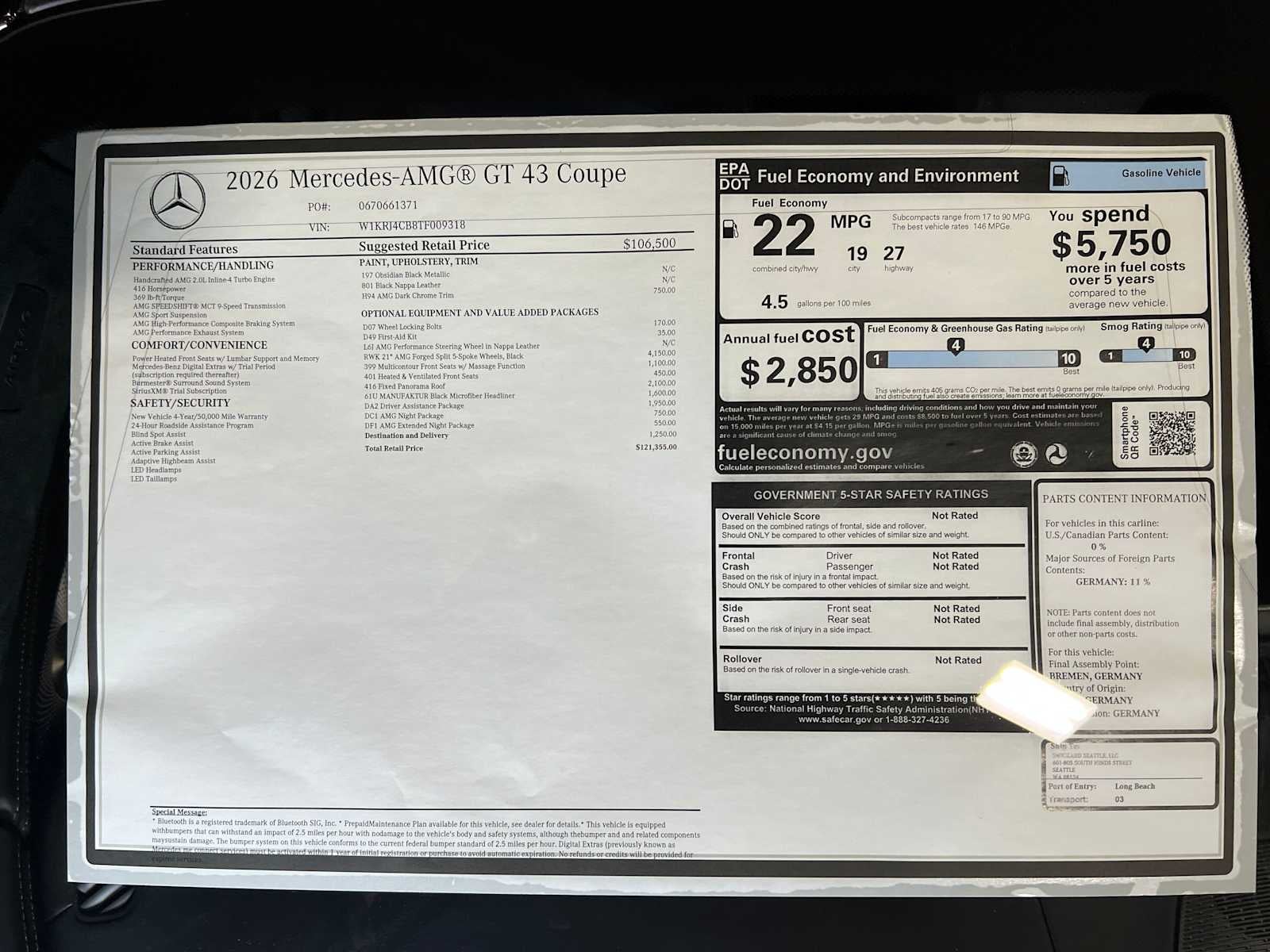 - Fuel Economy Est-Combined (MPG): 22