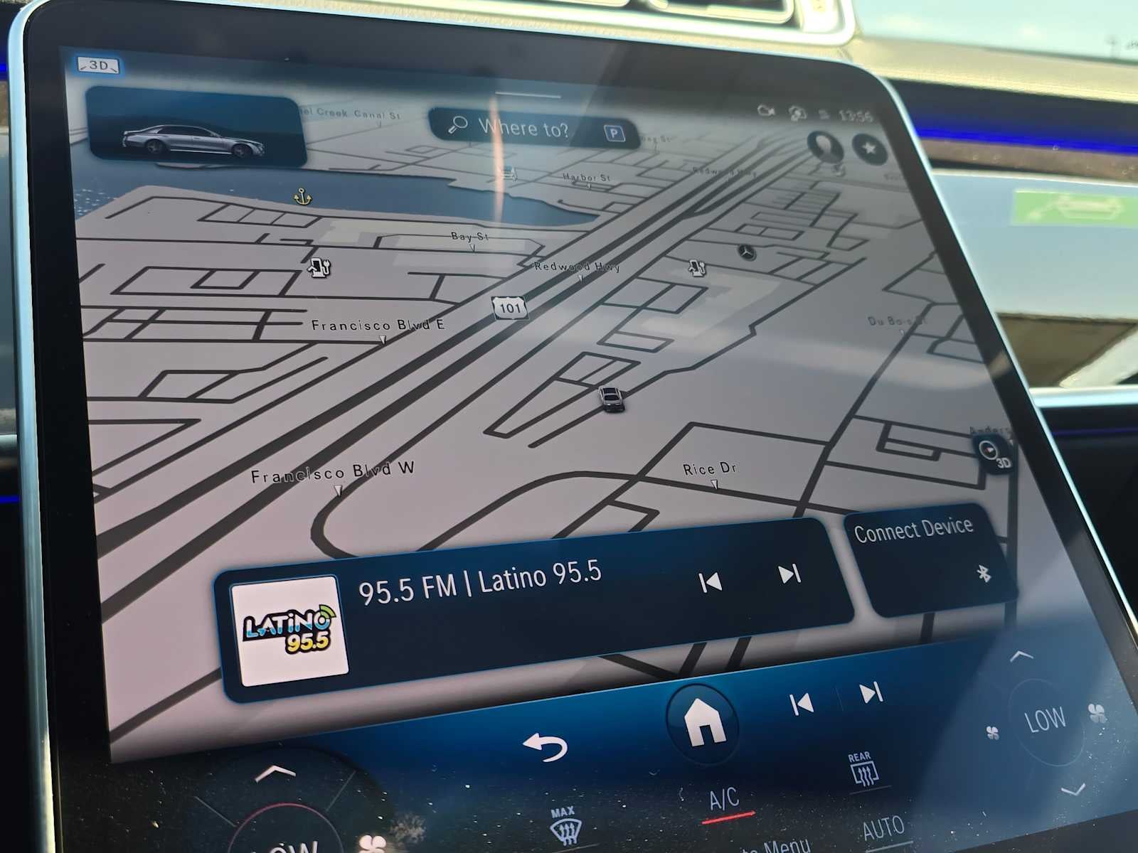 - Radio: MBUX w/Navigation -inc: Burmester 3D surround sound system, sound personalization, 12.8" OLED touchscreen center display, 'Hey Mercedes' voice control, augmented video for navigation, front wireless charging, wireless smartphone integration (Apple CarPlay, Android Auto), 8 USB-C ports (4 front, 4 rear), SiriusXM extended subscription and online music streaming