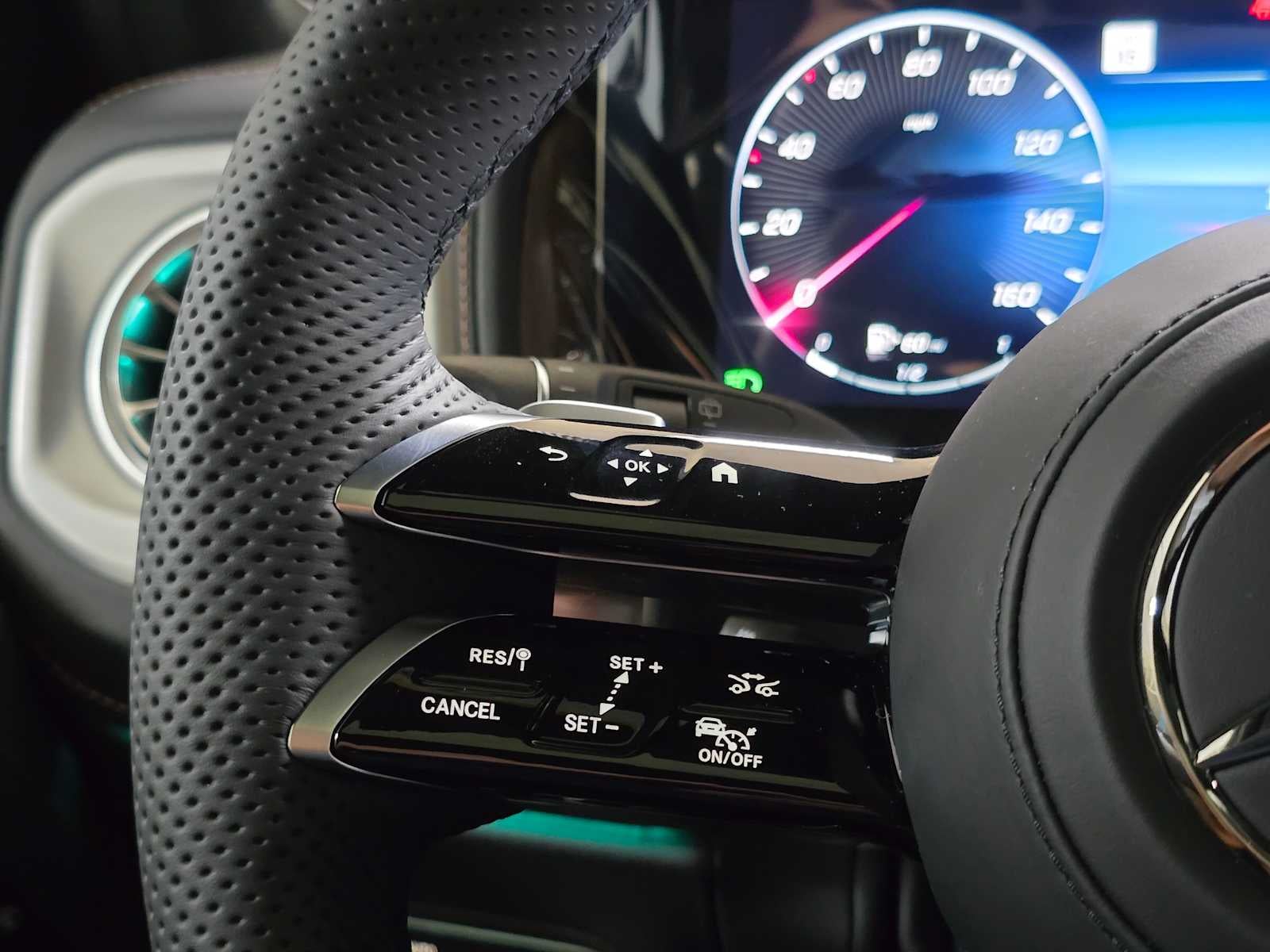 AMG® LINE AMG® body styling comprising inserts in the front and rear apron in high-gloss chrome plus flared wheel arches, Contrast stitching in red 501 upholsteries only, Exterior Protective Strips w/Trim Insert, brushed aluminum look, Multifunction Sports Steering Wheel in Nappa Leather, touch control buttons, shift paddles in silver chrome, perforated grip area and flattened bottom section, AMG® Floor Mats, Front Brake Calipers w/Mercedes-Benz Lettering, Sport Engine Sound, Leather Seats, Sunroof, Rear Air