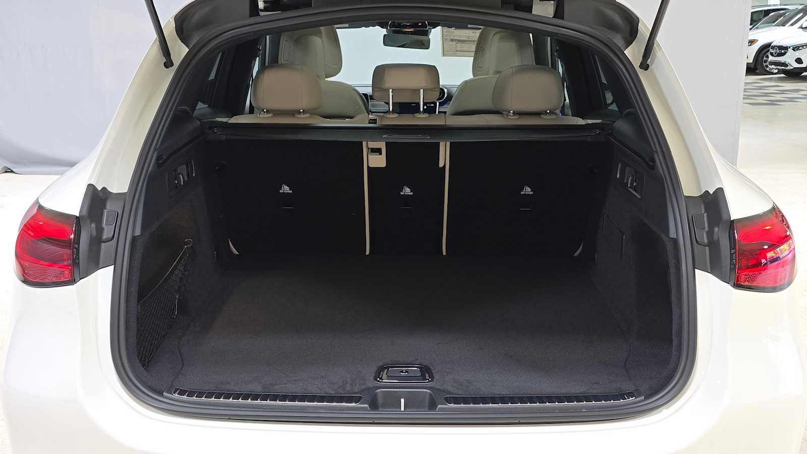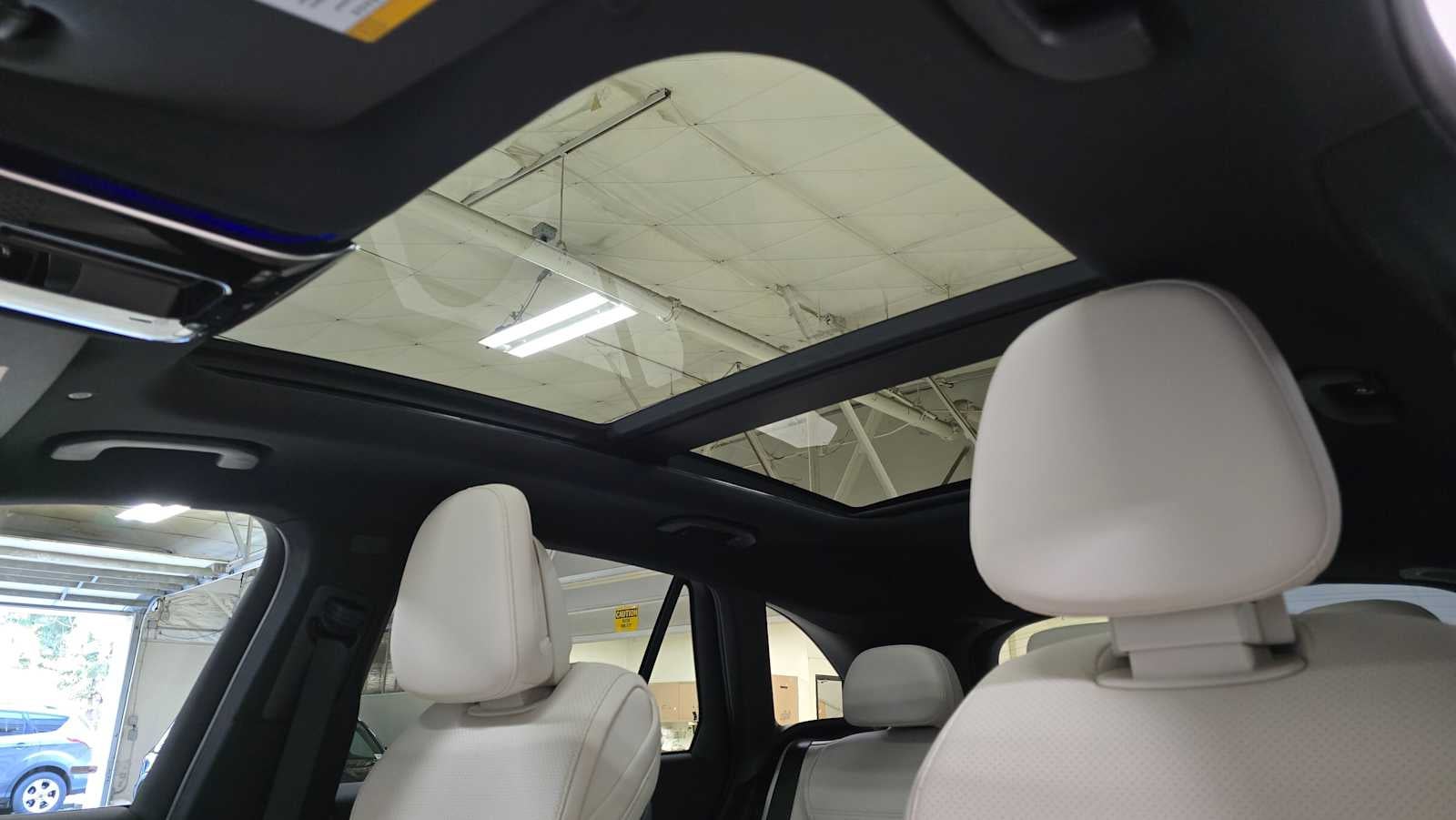 Sunroof, Heated Seats, Back-Up Camera, Power Liftgate, Turbo, Alloy Wheels, HEATED STEERING WHEEL, PANORAMA SUNROOF, Full-Time 4MATIC® All-Wheel. Polar White exterior and Macchiato Beige interior, GLC 300 trim.
