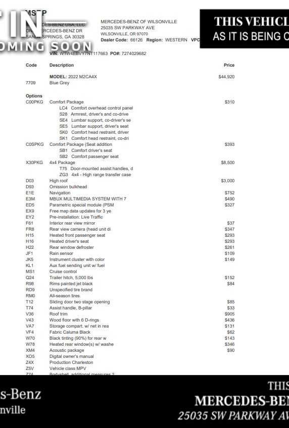NAVIGATION, RADIO: MBUX MULTIMEDIA SYSTEM W/7 TOUCHSCREEN, REAR VIEW CAMERA W/HEAD UNIT DISPLAY, 4x4 High Range Transfer Case w/Low Gear, Turbocharged, Diesel, Onboard Communications System, Keyless Start We are your locally owned Mercedes-Benz dealership. We are proud to represent Mercedes-Benz in the Portland region, and want to make sure that you have a Mercedes-Benz dealership worthy of serving you. Sit back in our customer lounge and enjoy an array of amenities. The Mercedes-Benz name attracts a special kind of clientele. You have unique taste and are looking for the perfect car to match. Let us show you why that perfect car is Mercedes-Benz.