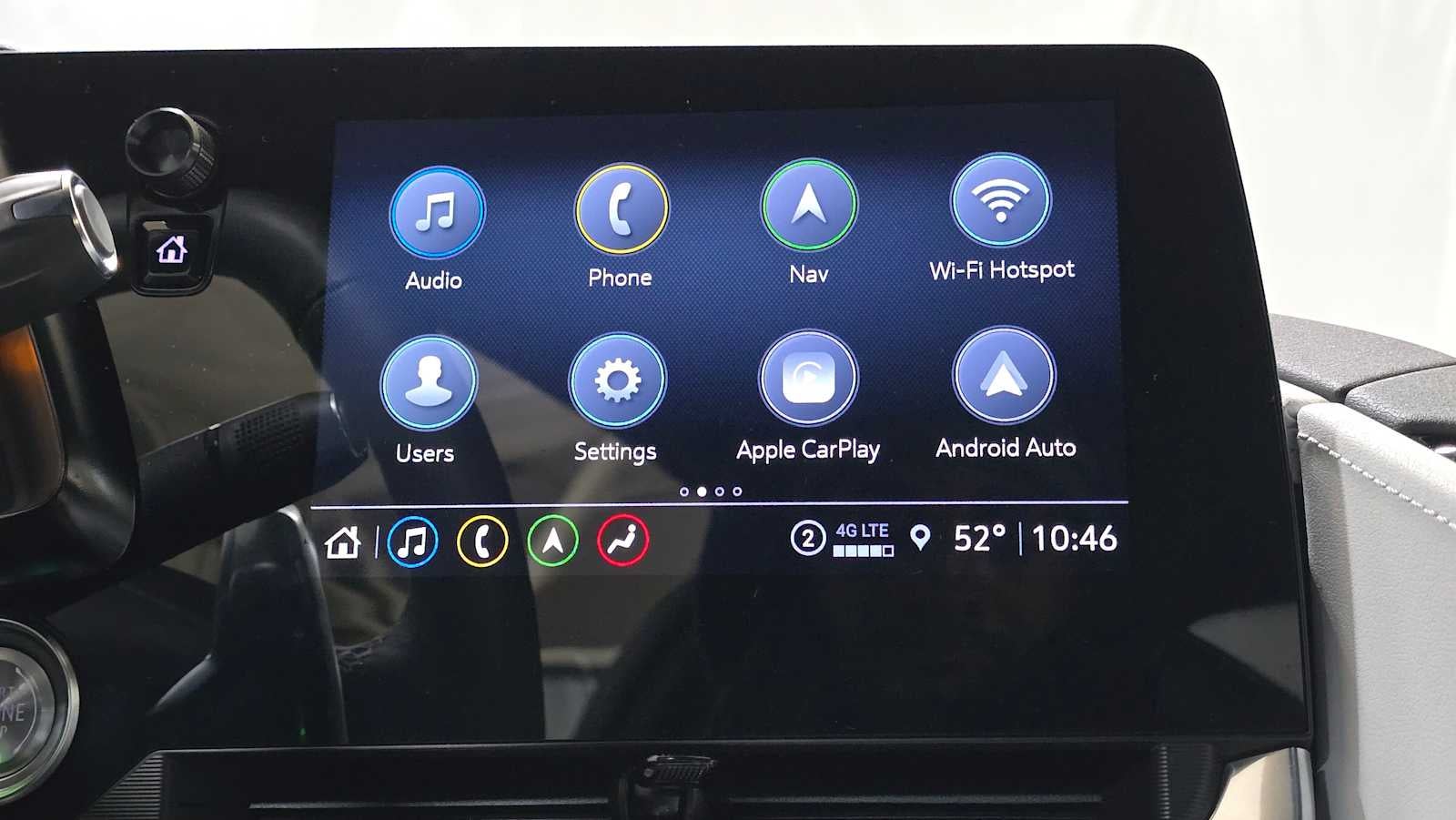 - Audio system, Chevrolet Infotainment 3 Premium system with connected Navigation 8" diagonal HD color touchscreen, AM/FM stereo, Bluetooth® audio streaming for 2 active devices, Apple CarPlay and Android Auto capable, enhanced voice recognition, additional memory for in-vehicle apps, cloud connected personalization for select infotainment and vehicle settings. Subscription required for enhanced and connected services after trial period.