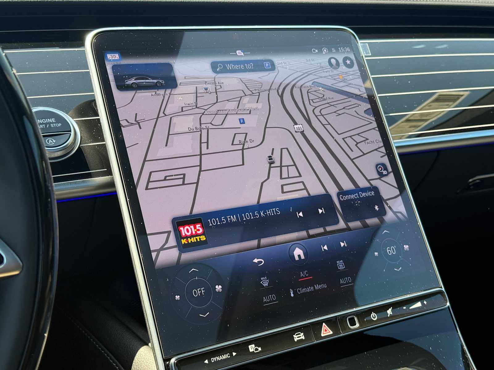 - Radio: MBUX w/Navigation -inc: 12.8" OLED touch screen, Hey Mercedes voice control, augmented video for navigation, wireless front charging, wireless smartphone integration (Apple CarPlay, Android Auto), 8 USB-C inputs, 115V power supply and online music streaming