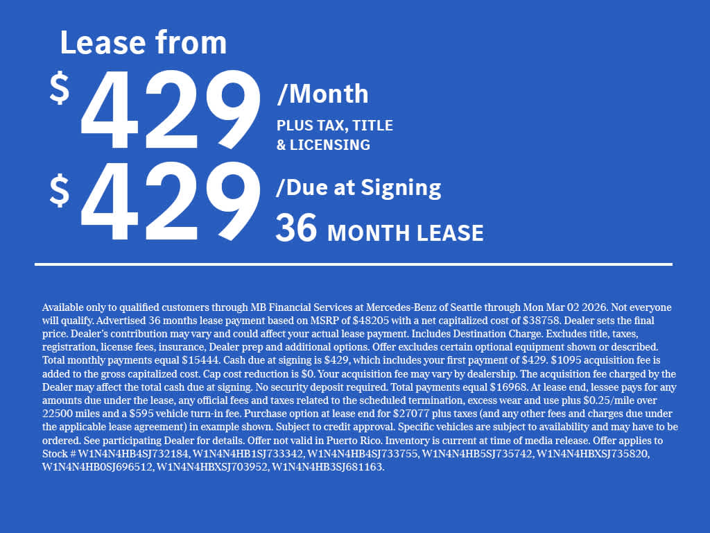 Full-Time 4MATIC® All-Wheel, Power Liftgate, Back-Up Camera, Turbocharged, Satellite Radio Exchange Privilege for 7 days or 500 miles, whichever comes first, Each Certified vehicle must pass a rigorous inspection of over 165 points, 24-Hour Roadside Assistance includes trip routing, trip interruption coverage and technical help, A network of over 300 Mercedes-Benz dealers will support your Certified Mercedes-Benz, Carfax Vehicle History Report, Balance of New Car Warranty plus 1 year/unlimited miles extended Limited Warranty Welcome to Mercedes-Benz of Seattle, your local, family-owned Mercedes-Benz dealer near Bellevue, WA. We are proud to be part of the Seattle community and have called it home since 1957. At Mercedes-Benz of Seattle we are always looking for ways to give back and sponsor local schools and the rodeo. But we dont just serve Seattle. In fact, our customers visit us from Tacoma, Edmonds, Lynnwood, Kirkland and even Redmond, WA.